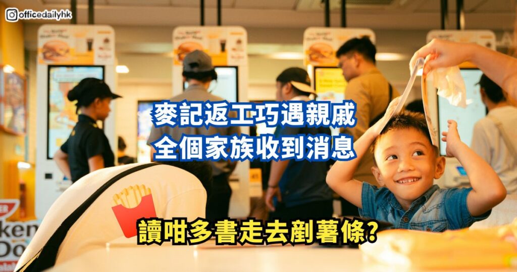 原來德叔老婆唔係搵我阿媽,佢係見到我返麥當勞之後打晒畀全部親戚,話我唔生性,讀咁多書走去做麥記,要剷薯條要收托盤要洗廁所,其實佢當時根本睇唔到我做呢啲工作,只係見咗我一眼,跟住就腦補咁多畫面出嚟,不過重點都係要喺班親戚面前唱我。